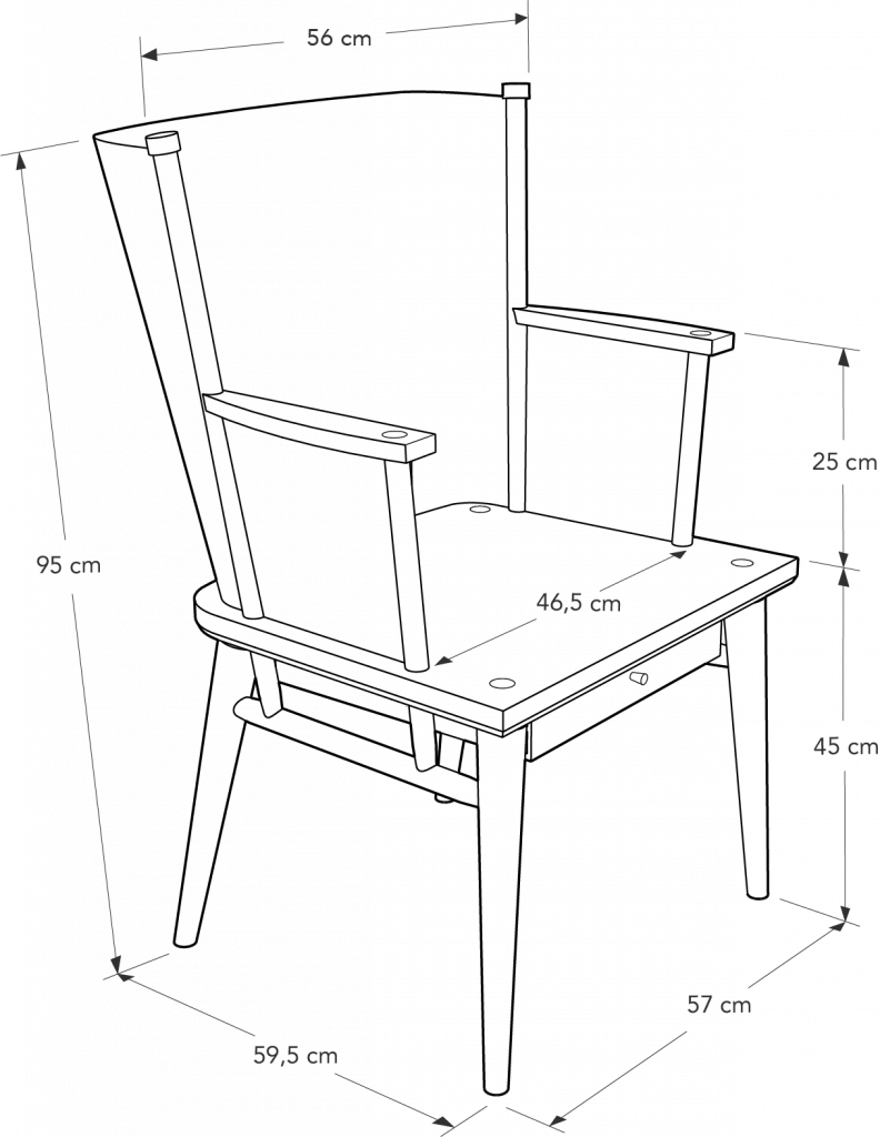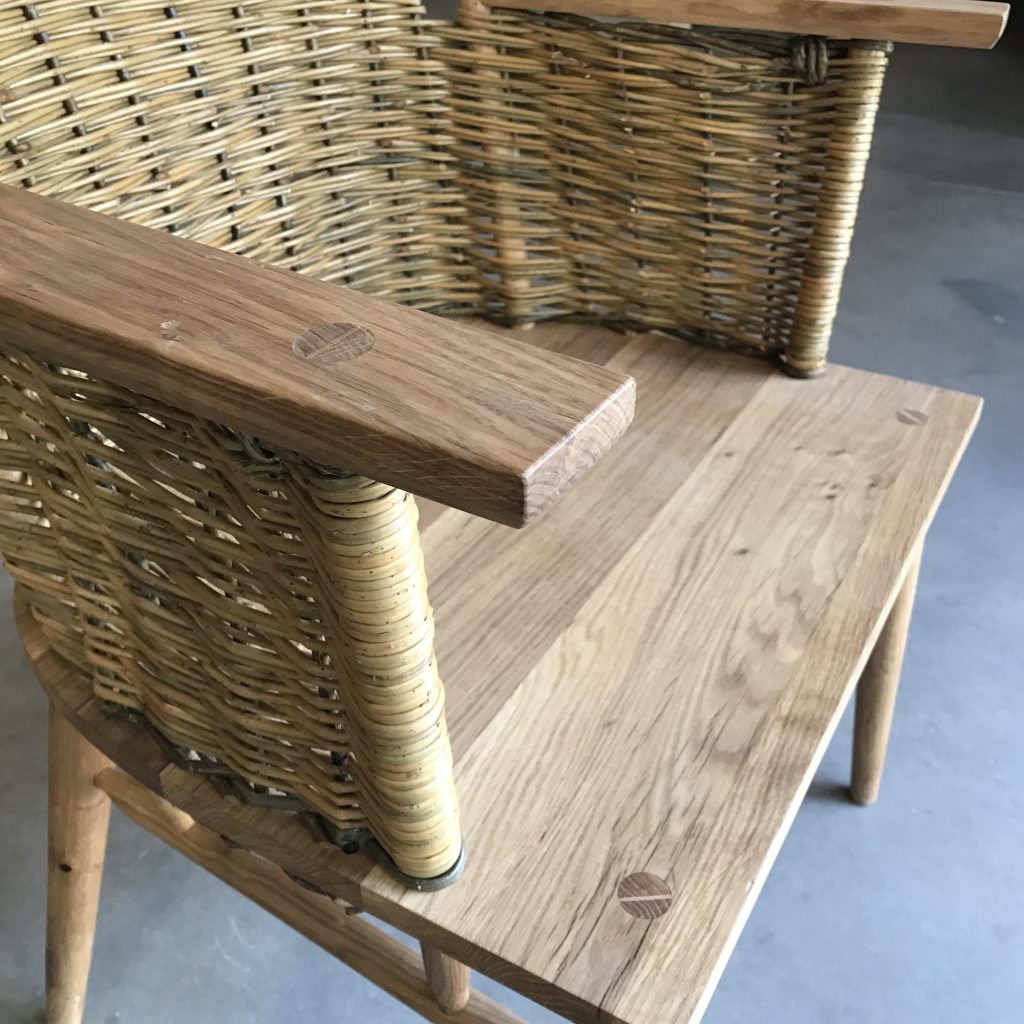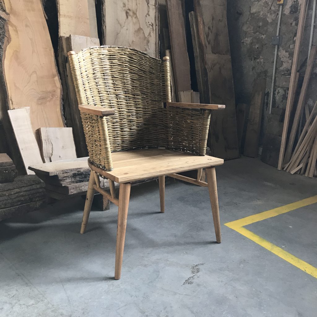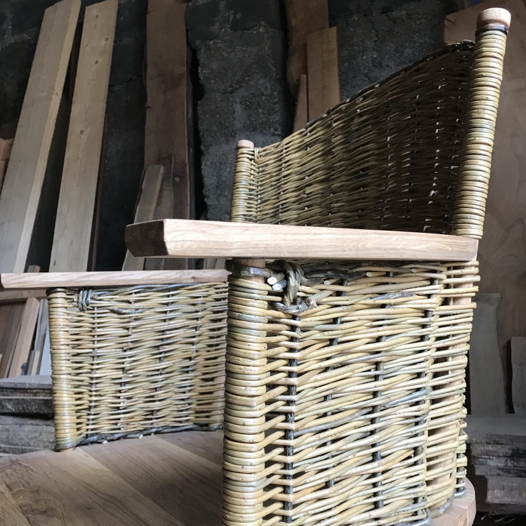 Son dossier est en osier tréssé à la main à la manière des paniers traditionnels.